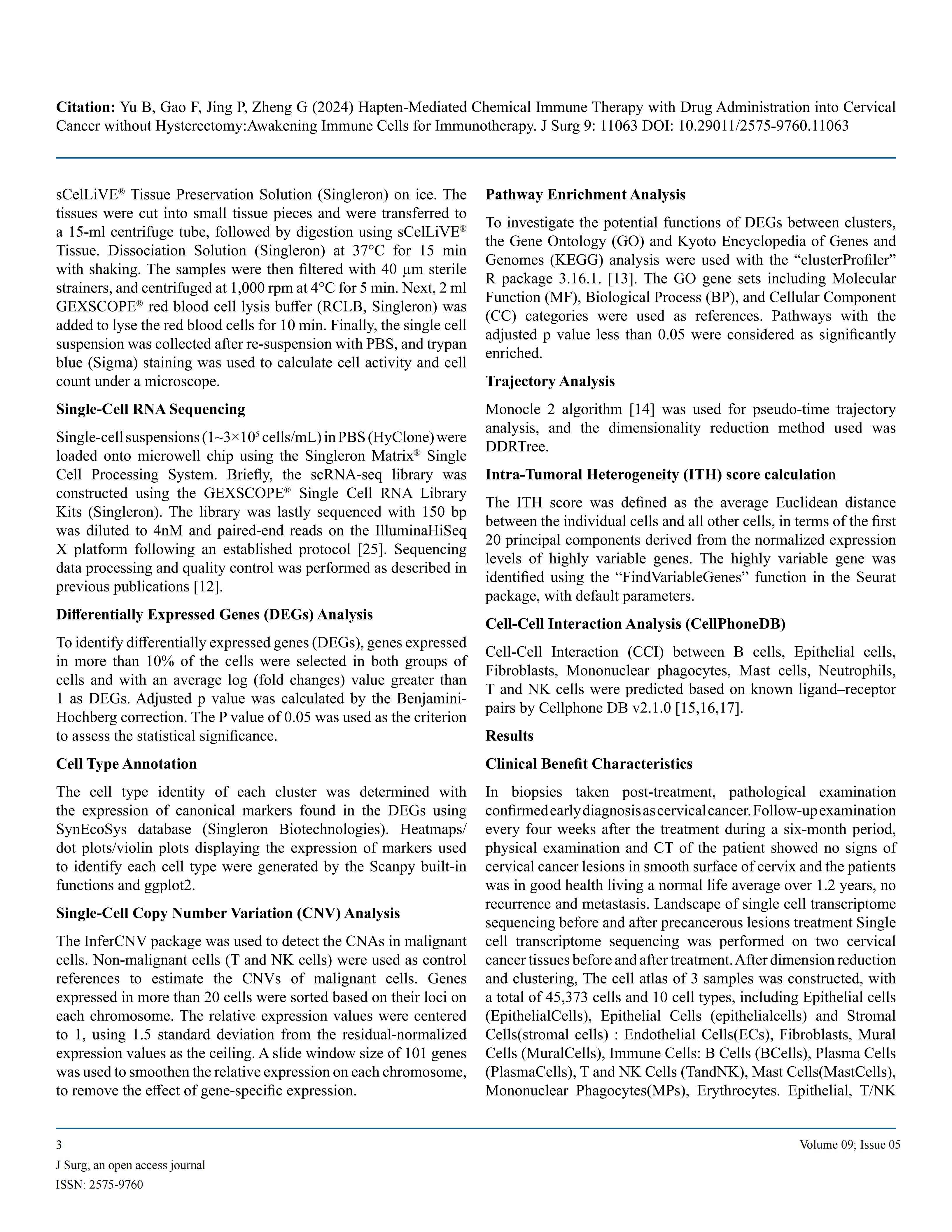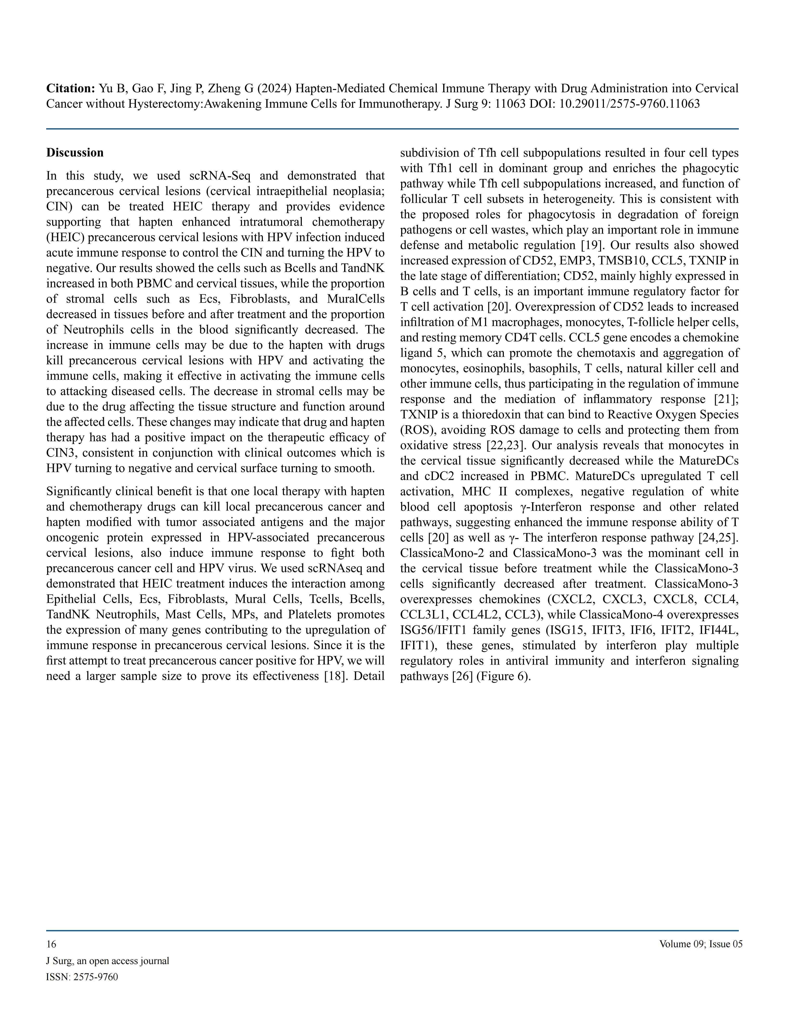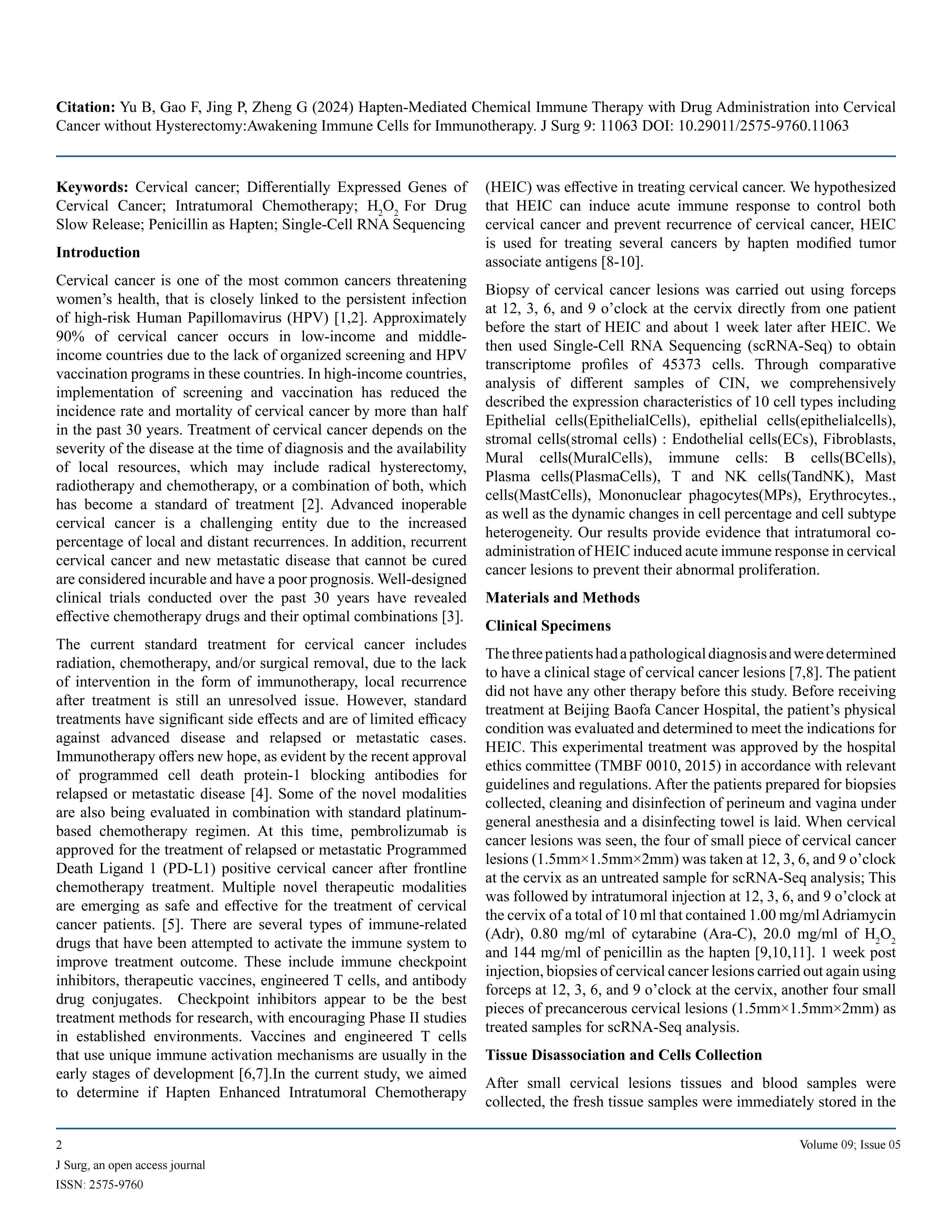 Based on extensive clinical data analysis, the paper demonstrates that the intratumoral injection of chemotherapeutic drugs combined with a hapten induces an acute immune response in cervical cancer lesions, further awakening immune cells. This Enhanced Intratumoral Chemotherapy (HEIC) offers a suitable potential treatment method for cervical cancer patients, achieving an effect akin to immunologic surgery without the need for cervical cancer surgery.